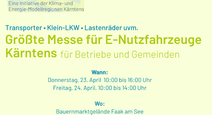 Die KEM Tiebeltal und Wimitzerberge lädt gemeinsam mit den Kärntner KEM-Regionen, dem Land Kärnten, der WKO sowie führenden Ausstellern zur größten Messe für E-Nutzfahrzeuge in Kärnten ein.